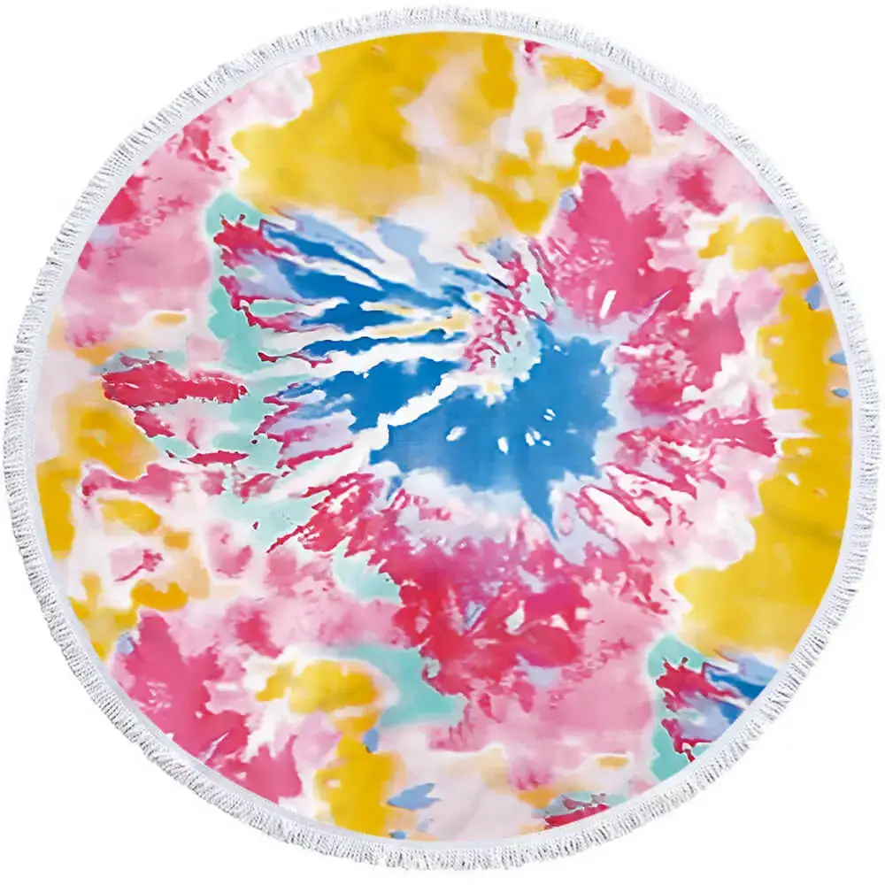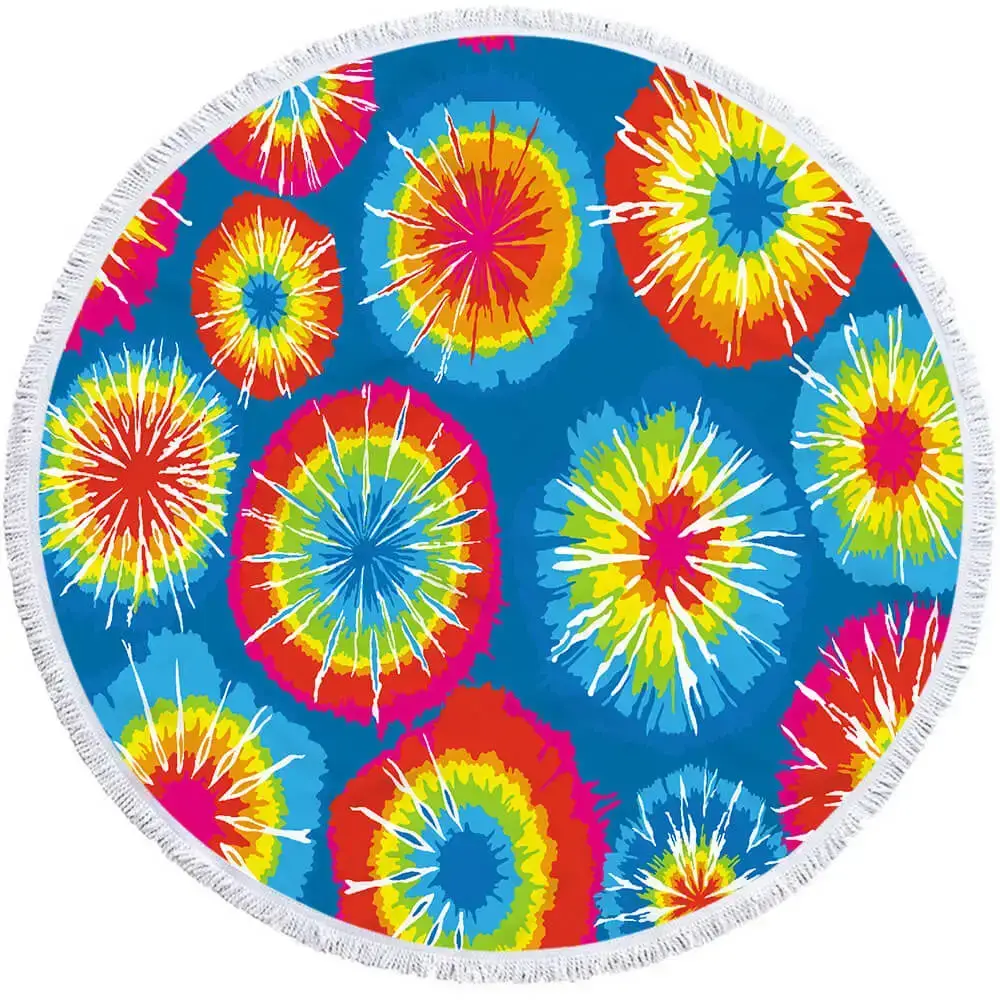 tie dye rainbow round beach towel blanket bulk,  Factory directly Custom wholesale microfiber round Beach Towel in Bulk, sublimation printing front side. sand less, water absorb, Contact us for a lower price with shipping, Make to order.